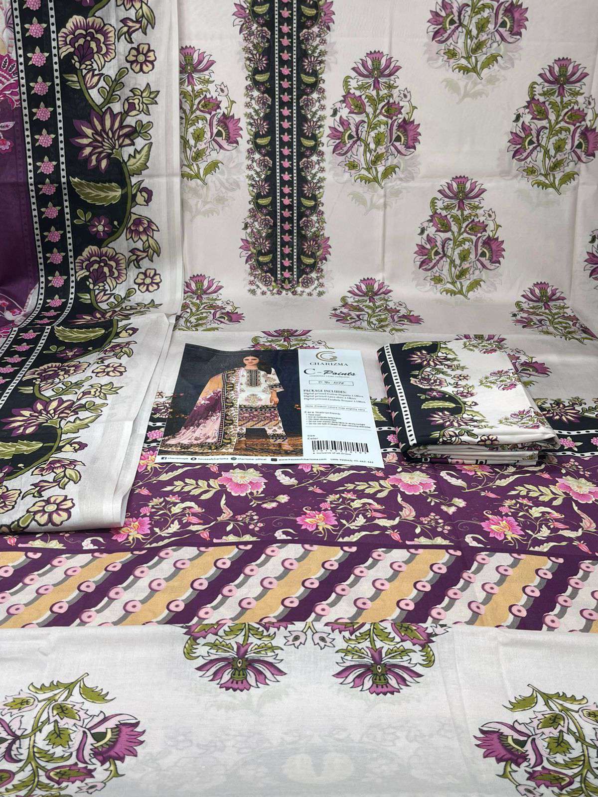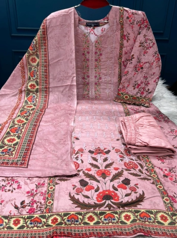 Premium Quality Charizma Catalogue Unstitched Collection - 1650 Pink Colour